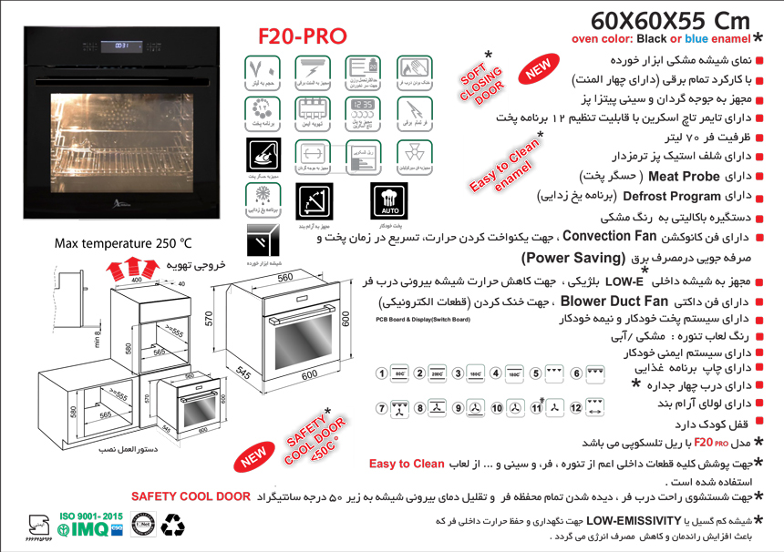 فر F20PRO اخوان با کارکرد برقی دارای 4 المنت و گریل پر قدرت با گرید انرژی A می باشد.