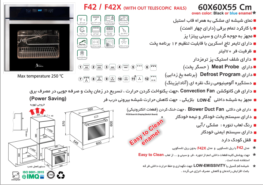 فر توکار برقی کد F42 اخوان با کارکرد برقی دارای 4 المنت و گریل پر قدرت با گرید انرژی A می باشد.