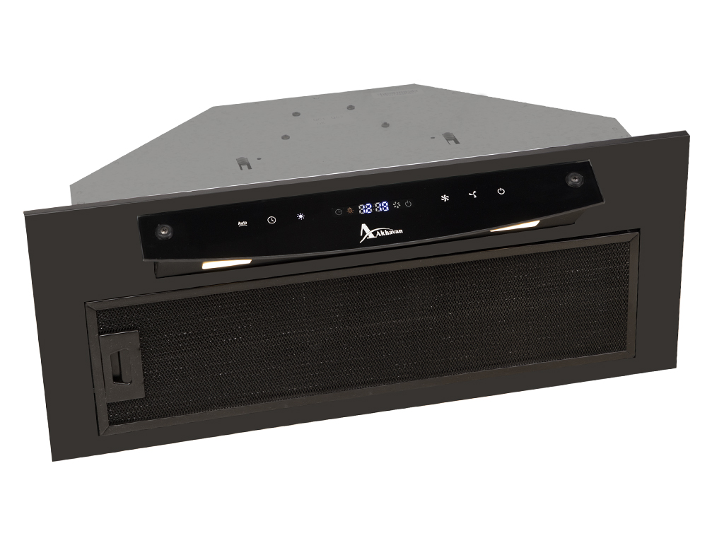 هود H203 اخوان محصولی دیگر از سری هود آشپزخانه اخوان بوده که داری نمای استیل مشکی با موتور توربو باکالیت 4 دور و پنل تاچ اسکرین است.